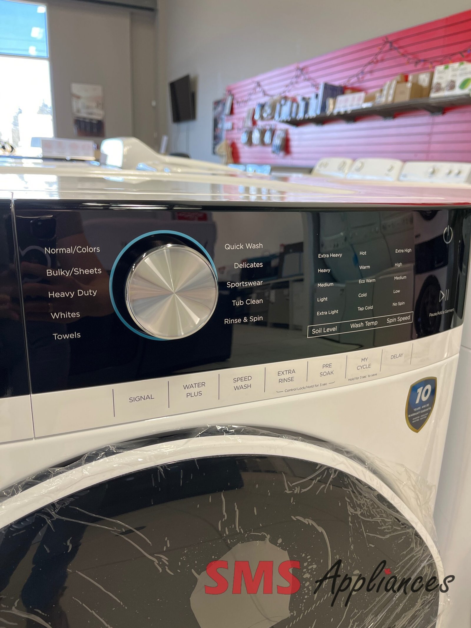 - 10 Pre-Set Drying Cycles: Includes Normal, Bulky, Towels, Heavy Duty, Sanitize, Delicates, Air Fluff, Time Dry, Quick Dry, and Towel Warmer settings.