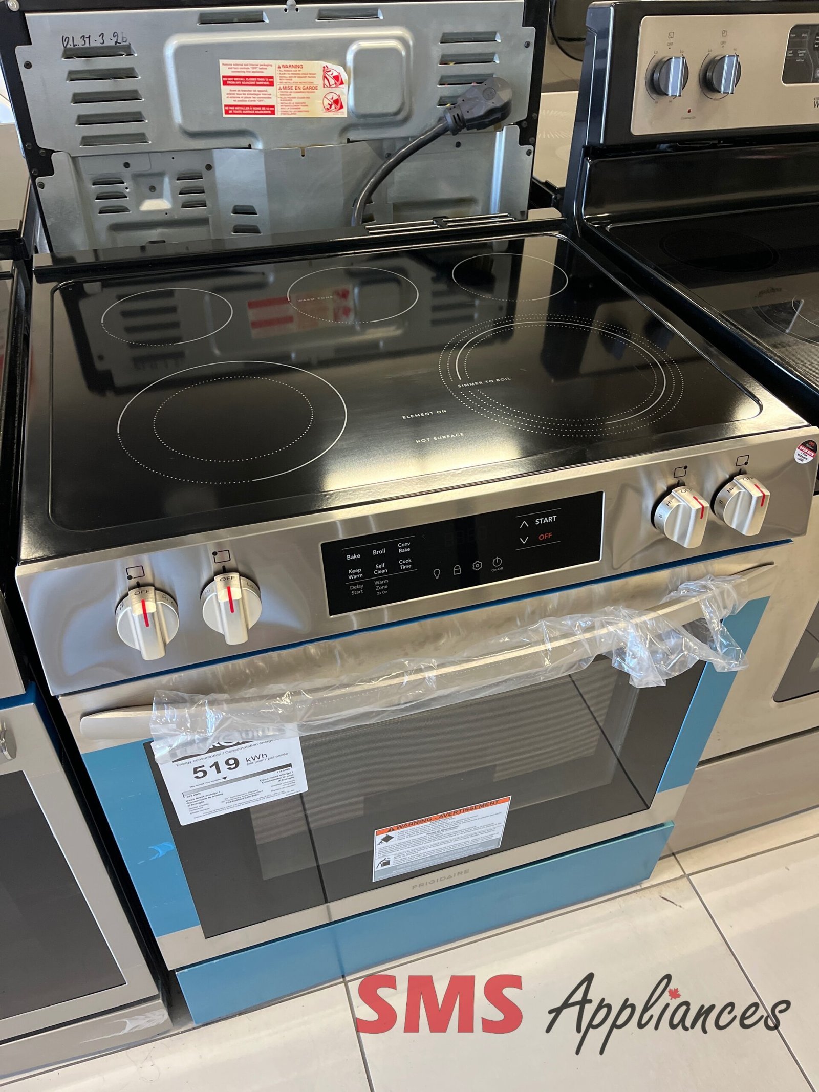 The Frigidaire FCFE306CAS is a stainless steel electric range equipped with a five-element cooktop, including a powerful 3,200W EvenTemp element and a SpaceWise dual expandable element. It offers 5.3 cu. ft. of oven space with Even Baking Technology for consistent results, a hidden bake element for easy cleaning, and a wide Store-More storage drawer. The unit also includes a quick 30-minute steam clean option and is designed to fit standard 30-inch range cutouts with its front-control, built-in look.