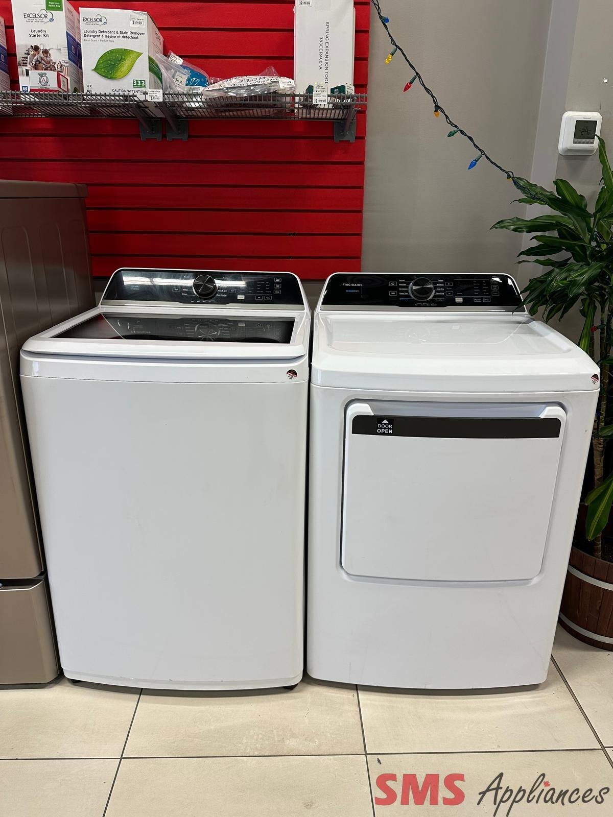Frigidaire FLVW7523BW & FLVE752CBW, Top Load Washer, 27 inch Width, 5.1 cu. ft. Washer Capacity, 10 Wash Cycles, 5 Temperature Settings, 710 RPM Washer Spin Speed, ENERGY STAR Certified, Agitator No Delay Start Function, Electric Dryer, 7 cu. ft. Dryer Capacity, 10 Dry Cycles, 4 Temperature Settings, Steel Drum