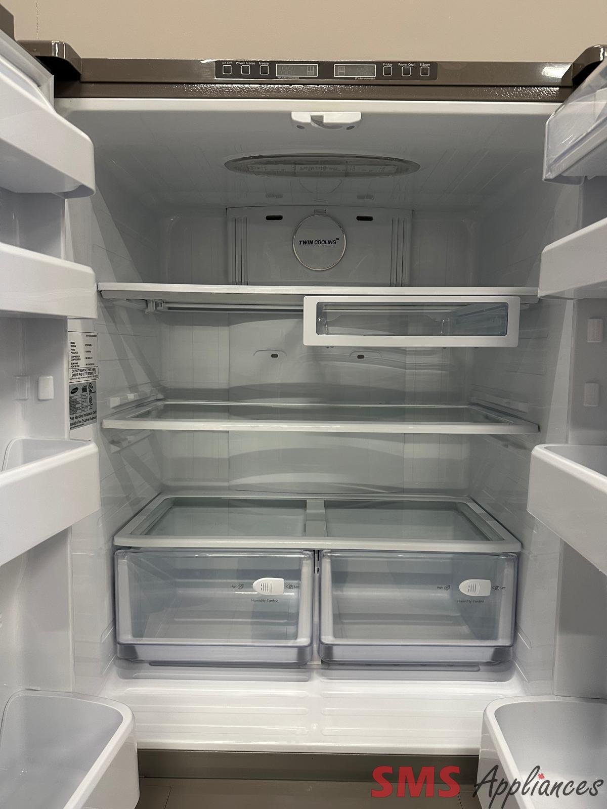 with 3 Adjustable Glass Shelves, Humidity Controlled Crispers, Ice Maker, LED Lighting and Internal Digital Display