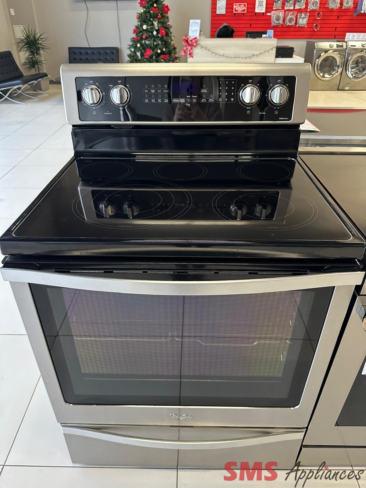 Whirlpool YWFE745H0FS Electric Range, 6.4 cu. ft. Capacity, 30 inch Exterior Width, True Convection, Storage Drawer, Self Clean, 3,000 Watts Highest Burner Element, Stainless Steel colour, FlexHeat™ Elements, Frozen Bake™ True European Convection